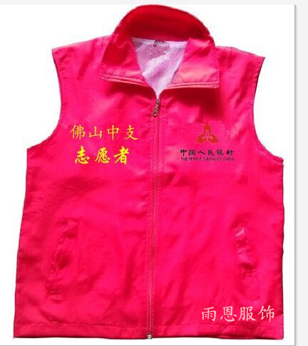 中国人民银行佛山支行2015年8月,在定做志愿者马甲时,豪不犹豫选择雨恩服饰,当客户看到雨恩服饰官网时,一眼就相中了红色的拉链志愿者马甲,这也是我们在志愿者马甲里面卖的最好的销量冠军哦