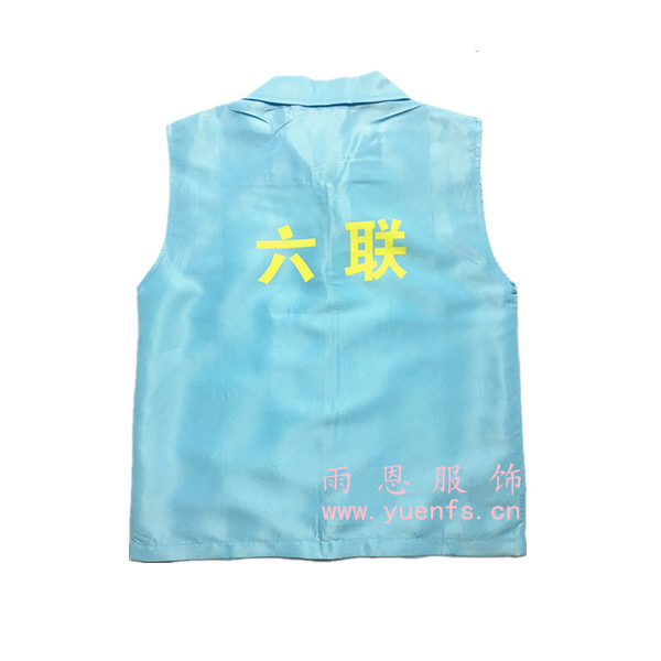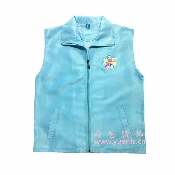 天蓝色的学校活动马甲背心,青春洋溢,正好适合学生,这个是由深圳正方圆广告公司小金联系我们的。在百度搜索找到我们,要求定制这一批家长和小孩穿的活动马甲背心。马甲前副是拉链,下摆两个斜口袋,放手机或其他物品都比较方便,左胸前的LOGO很特别,这款活动马甲实际看更美哦!