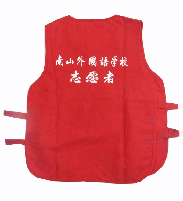- 产品简介:深圳中学志原者马甲,学校马甲的款式也是圆领套头式的,穿着非常的方便,两侧上魔术贴,可调节大小,前后都丝印上LOGO和字。
