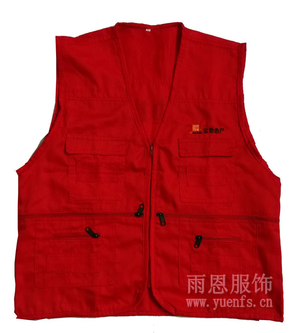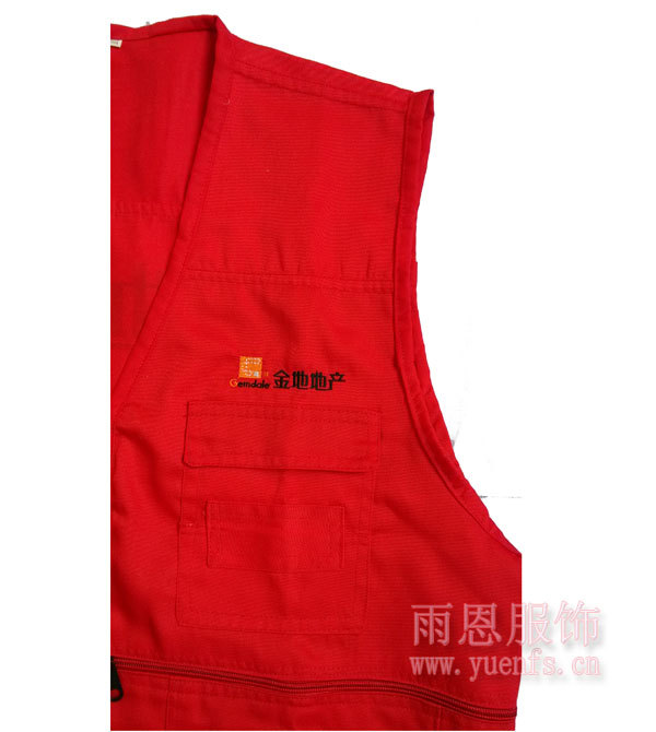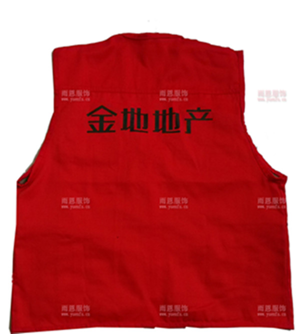 物业施工马甲背心后副则丝印上金地地产的标语,体现的广告效应。这款马甲就是珠海金地伊顿山管理处正在使用的。