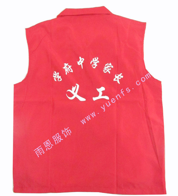 义工马甲广泛应用于促销广告服,产品形象展示,社区活动,青年志愿者活动,义工活动,员工统一工作服,慈善晚会,机场等,马甲上丝印的工艺有:胶桨,水桨,热转印,热升华,电脑绣花,一般丝印的位置在前左胸,或者后副中间